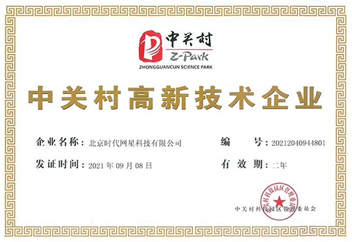 時代網(wǎng)星通過“中關(guān)村高新技術(shù)企業(yè)”認定