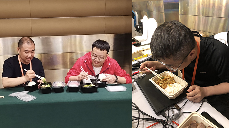 馬霆對(duì)項(xiàng)目的整體情況、后援支持情況進(jìn)行了介紹總結(jié),陳偉作為現(xiàn)場(chǎng)服務(wù)的負(fù)責(zé)人,對(duì)會(huì)議服務(wù)情況進(jìn)行了匯報(bào);現(xiàn)場(chǎng)服務(wù)工程師蔣利淼、劉志、李子航分別就各自的工作進(jìn)行了總結(jié)匯報(bào)。從14日赴博鰲直至22日返回北京,在近十天的時(shí)間內(nèi),這些同事幾乎每天都在不斷的系統(tǒng)連接測(cè)試、新增線(xiàn)上嘉賓鏈接、現(xiàn)場(chǎng)應(yīng)急處理、不同會(huì)議之間的銜接等工作中度過(guò)。會(huì)議安排的間隙最短為15分鐘,部分會(huì)議超時(shí),導(dǎo)致準(zhǔn)備時(shí)間不足10分鐘,給現(xiàn)場(chǎng)服務(wù)帶來(lái)非常大的壓力,致使工作人員的精神始終處于高度緊張狀態(tài),深恐在這樣重大的國(guó)際會(huì)議場(chǎng)合出現(xiàn)紕漏。即使在會(huì)議結(jié)束之后也并不能立即休息,團(tuán)隊(duì)成員還要進(jìn)行及時(shí)總結(jié)、聽(tīng)取會(huì)務(wù)組的有關(guān)指令并為次日的會(huì)議做好準(zhǔn)備。在緊張的日程安排之下,團(tuán)隊(duì)成員每天的睡眠時(shí)間基本不超過(guò)4個(gè)小時(shí);雖然在博鰲將近十天,但團(tuán)隊(duì)成員表示,最大的愿望是“能夠觀賞日光下的海岸和椰子林”。
