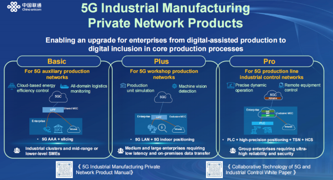 5G專網(wǎng)為工業(yè)制造帶來(lái)顯著優(yōu)勢(shì),但如何選擇適合的產(chǎn)品成為很多企業(yè)頭疼的問(wèn)題。中國(guó)聯(lián)通此次發(fā)布的5G工業(yè)制造專網(wǎng)產(chǎn)品分為三個(gè)版本,分別是Basic版、Plus版和Pro版,為不同的場(chǎng)景量體裁衣,無(wú)論是行業(yè)龍頭還是中小企業(yè),都能找到適合自己的方案。