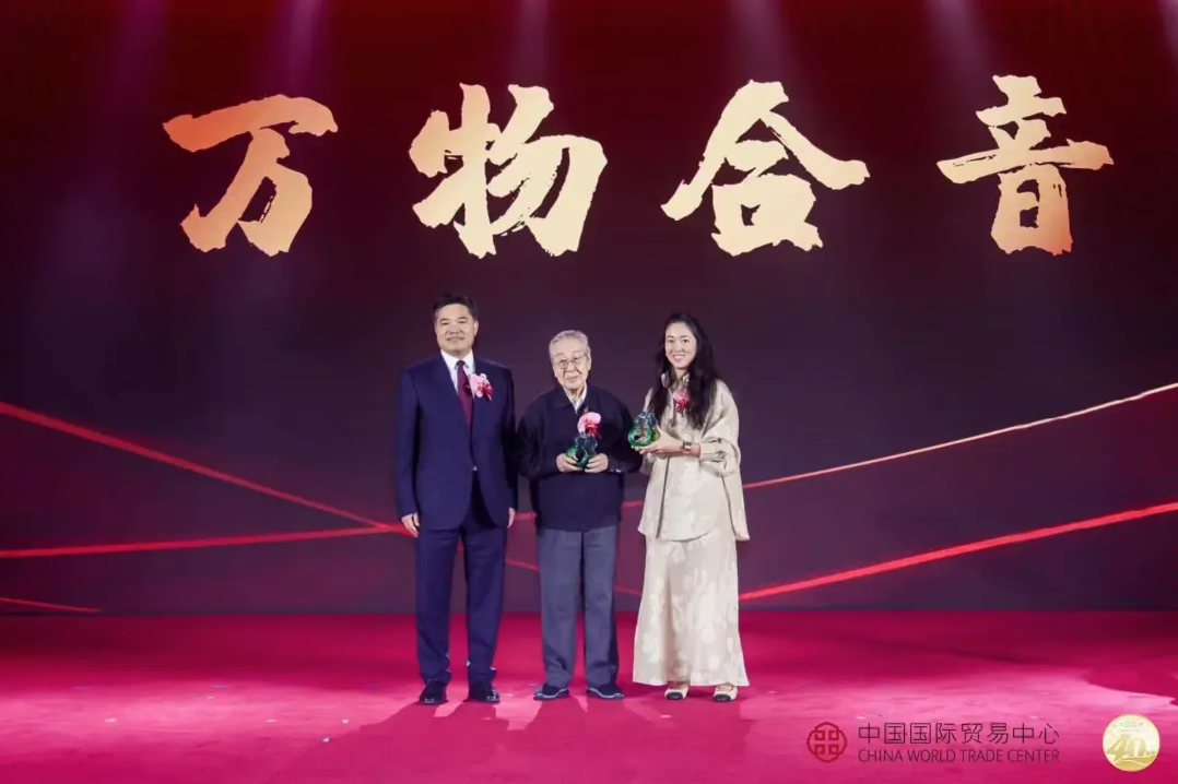 回望奮斗路,國貿(mào)中心的輝煌成就離不開富有遠(yuǎn)見的奠基人和創(chuàng)業(yè)者。其中101歲高壽的馬來西亞華人郭鶴年先生是國貿(mào)中心的奠基者之一,他雖然身在香港,但是心卻在國貿(mào),他以最傳統(tǒng)的信函方式表達(dá)了對(duì)國貿(mào)中心的深厚感情。魏玉明先生是國貿(mào)中心第二任董事長,2024年正是魏老百歲華誕,他親臨大會(huì),并寄語國貿(mào):繼承艱苦奮斗的精神,開創(chuàng)宏偉事業(yè)的未來。大會(huì)現(xiàn)場,盛秋平董事長代表國貿(mào)中心向郭鶴年先生和魏玉明先生兩位德高望重的百歲老人致敬獻(xiàn)禮。禮物是名為“萬物合音”的琉璃作品,既代表兩位老人的高雅品格,又象征著合資雙方精誠合作成就了 “銳意進(jìn)取,鑄就非凡”的國貿(mào)精神;葫蘆的造型設(shè)計(jì)更是對(duì)兩位老人福祿雙全、健康長壽的誠摯祝福。