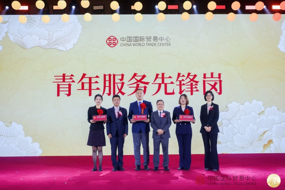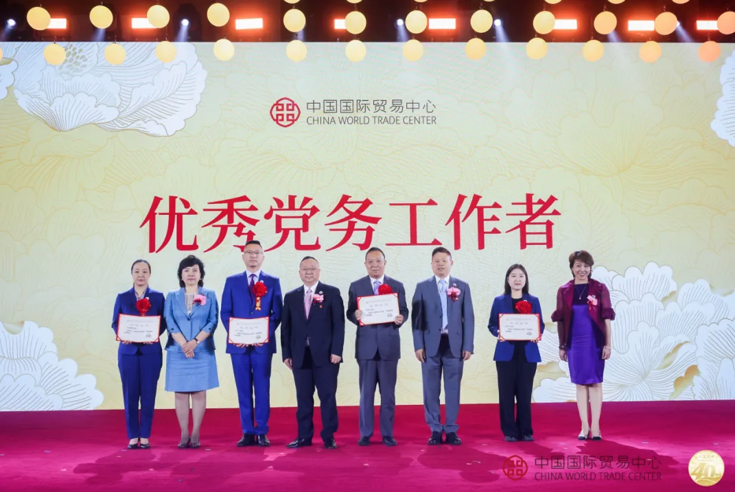 在新時(shí)代新征程上,國貿(mào)中心的高質(zhì)量發(fā)展始終凝聚著奮進(jìn)力量。在國貿(mào)中心成立40周年之際,大會(huì)進(jìn)行了國貿(mào)中心黨委“兩優(yōu)一先”表彰和“青年服務(wù)先鋒崗”授牌活動(dòng)。國貿(mào)中心黨委書記吳相仁,副書記支陸遜、錢曉瑾和郎寬,分別為優(yōu)秀黨員代表、優(yōu)秀黨務(wù)工作者代表和先進(jìn)基層黨組織代表頒發(fā)榮譽(yù)證書;國貿(mào)中心有限公司總經(jīng)理梁師麟、股份公司副總經(jīng)理鐘榮明、胡燕敏分別為中國大飯店前臺(tái)、國貿(mào)寫字樓禮賓部、國貿(mào)大酒店酒廊餐廳進(jìn)行“青年服務(wù)先鋒崗”授牌。