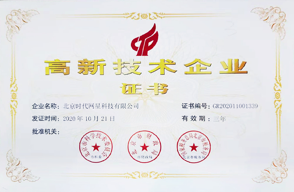 近日,北京時代網星科技有限公司在經過基礎條件、高學歷人才占比、產品收入、研究開發(fā)費用、軟件產品知識產權著作、發(fā)明專利等層層篩選和嚴苛的審核后,最終獲評為國家高新技術企業(yè)(高新技術企業(yè)證書編號:GR202011001339;發(fā)證日期:2020年10月21日)。