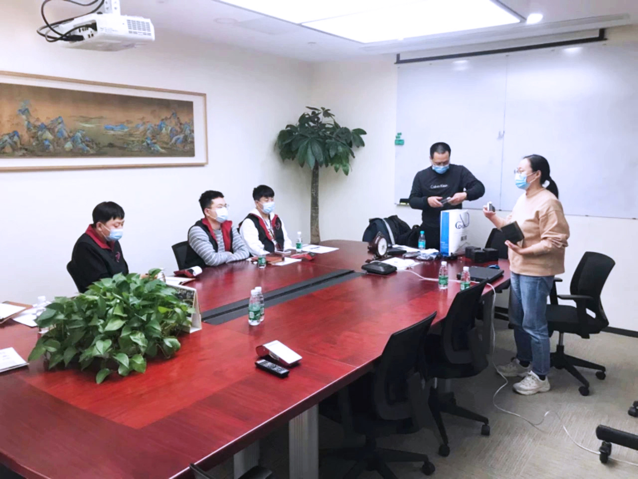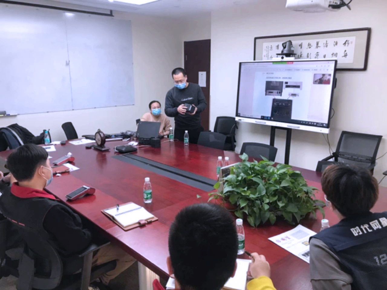 設(shè)備廠商技術(shù)人員為網(wǎng)星工程師講解設(shè)備連接與操作流程不在班的工程師通過公司的遠程會議系統(tǒng)實現(xiàn)遠程參訓