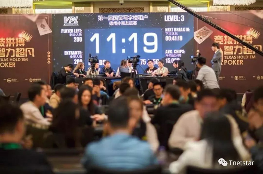這是國貿(mào)寫字樓首次開展德州撲克智競活動,也是時代網(wǎng)星新媒體業(yè)務(wù)初試鶯啼、傾力承辦的第一次線下活動。現(xiàn)場人氣火爆,吸引了國貿(mào)寫字樓150多位租戶員工報名參賽。