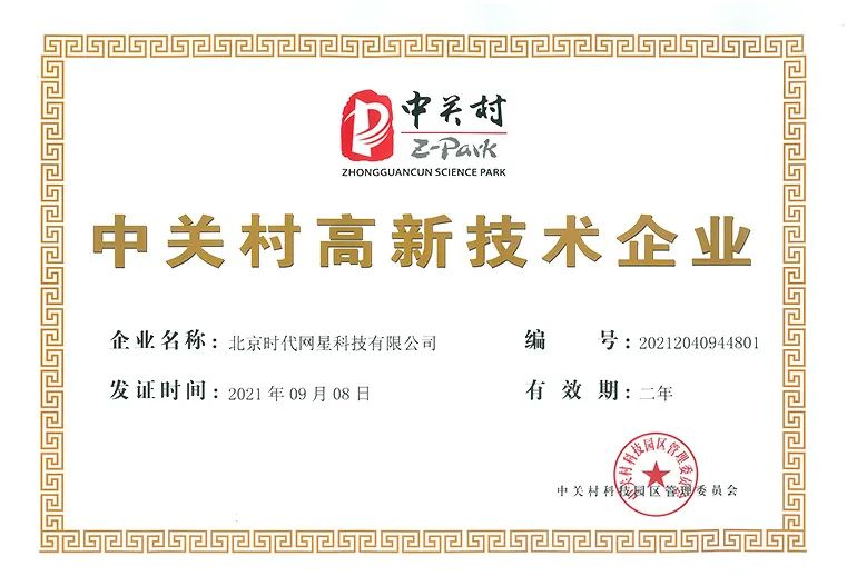 近日,北京時代網(wǎng)星科技有限公司獲得“中關(guān)村高新技術(shù)企業(yè)”認(rèn)證(證書編號:20212040944801;發(fā)證日期:2021年9月8日)。時代網(wǎng)星已于2020年10月通過高新技術(shù)企業(yè)認(rèn)定。